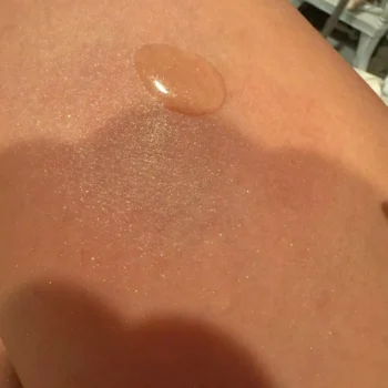 This product looks gorgeous on the skin, with the initial bronze appearance in the bottle transforming into a lovely pink hue upon application. Despite being pale, I found the color to be flattering. Additionally, the subtle baby powder scent, with hints of floral notes, adds to the pleasant experience. Though not overpowering, the fragrance lingers subtly after application.