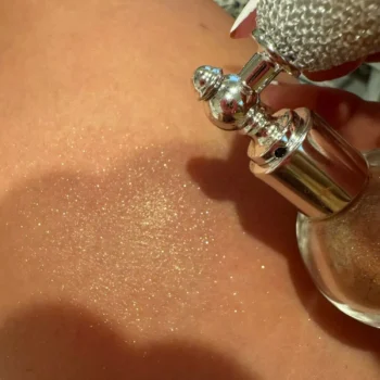 This is a really fun product to use. It’s lightweight and easy to handle, but be careful not to turn the bottle while spraying as it can release a lot of product. I highly recommend it for ladies who love sparkling glitters.