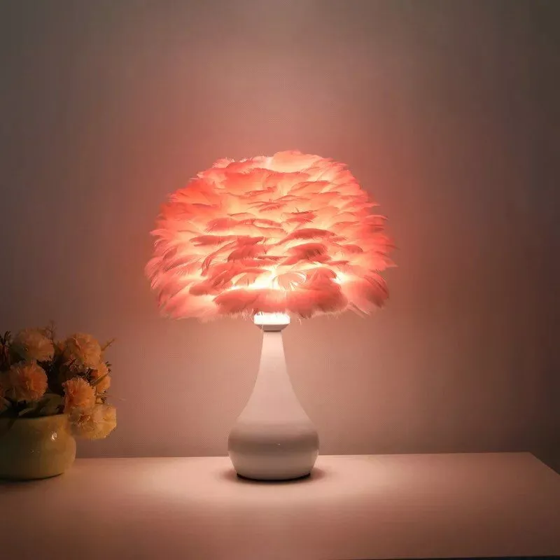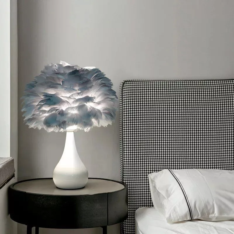 Chic White Feather LED Table Lamp – Fashionable Modern Decor for Bedroom & Living Room