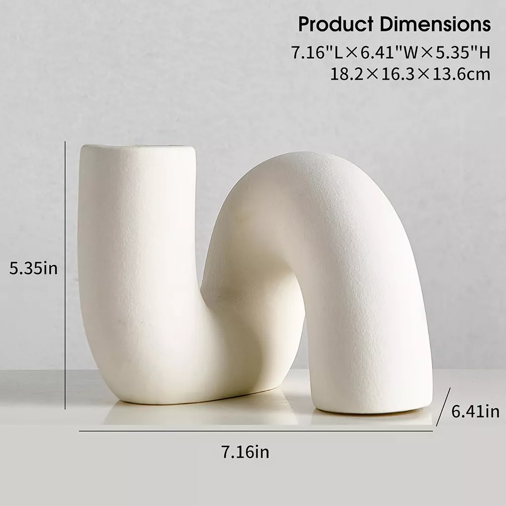 Our vase distinguishes itself with its unique twisted tube shape, offering a fresh perspective on traditional ceramic vases. The sleek, white ceramic finish complements any color scheme, making it a versatile addition to your home or office decor. Whether filled with vibrant blooms or standing alone as a sculptural piece, this vase is sure to catch the eye and spark conversation.