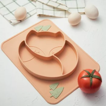 Baby Silicone Dinner Plate with Cartoon Fox Design