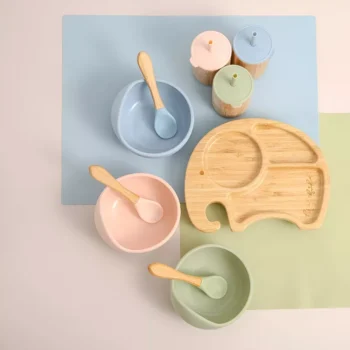 Bamboo Feeding Bowl, Spoon & Silicone Bowl