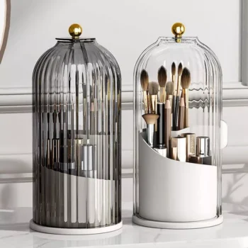 Luxury Rotating Makeup Organizer with Lid – Compact Cosmetic Storage for Brushes & Lipsticks