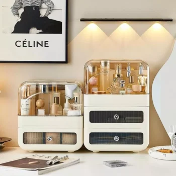 Luxurious Cosmetic and Jewelry Organizer with Drawer – Compact Skincare Storage for Home and Bathroom