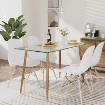 Mid-Century Modern 63″ Natural Finish Wood Dining Table