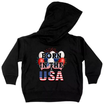 Born in the USA Toddler Hoodie – American Flag Toddler Hooded Sweatshirt – Patriotic Kids’ Hoodie