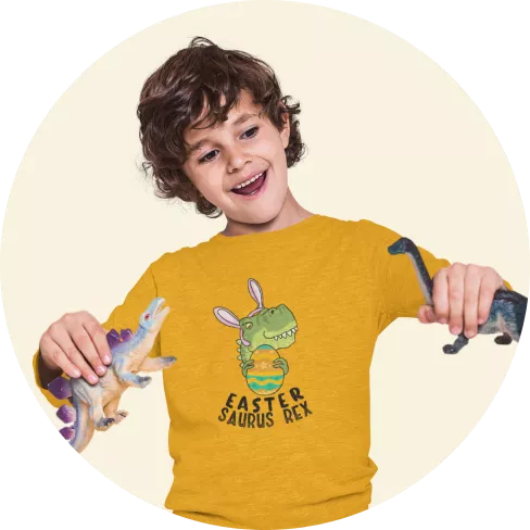 Kids’ Jersey Long Sleeve Dinosaur Easter Shirt