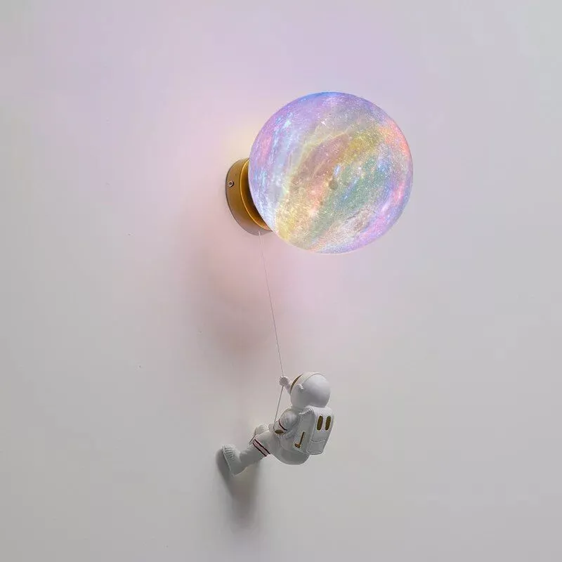 This wall lamp isn’t just a light fixture; it’s a statement piece that embodies modern style with a playful twist. The astronaut boy toy lustre detail adds a touch of creativity and fun, making it a unique addition to any room’s decor.