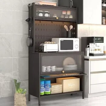 40″ Natural & White Solid Wood Kitchen Island with Storage and Towel Rack