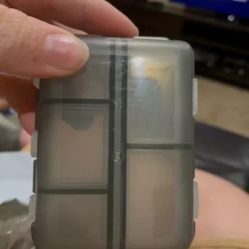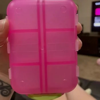 I adore this versatile pill box. Its numerous compartments make it suitable for more than just pills, and its size is just right—not too large to fit comfortably in a purse. I carry mine with me constantly. In addition to holding pills, it serves as a handy storage spot for small items like buttons, ensuring they won't get lost. The flexibility of the compartments allows you to store whatever you need, making it perfect for coordinating with different color schemes or organizing various items.