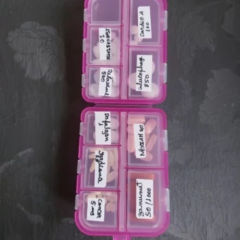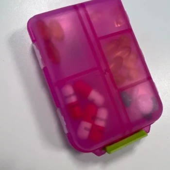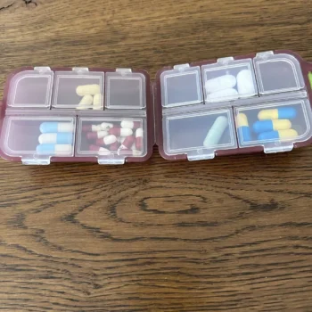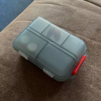 This travel pill organizer is fantastic! It’s just the right size to fit in my bag without being bulky. The compartments are clearly labeled and hold a good amount of pills. The lids snap shut securely, so I don’t have to worry about any spills. It’s also very easy to clean and feels quite durable. I’ve taken it on several trips, and it’s been so convenient for keeping my medications organized. It’s a great product for anyone who travels frequently and needs a reliable way to manage their pills. I’m very satisfied with my purchase.